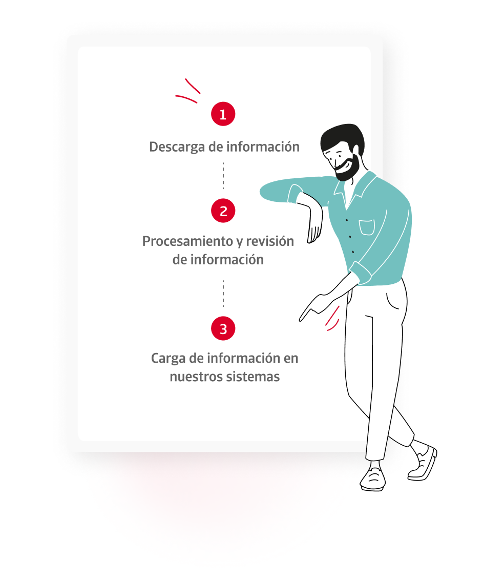 Una parte de la información se descarga y tras rigurosos procesos de revisión se carga en nuestros sistemas. A veces la compramos a proveedores externos, la normalizamos, y después de un riguroso análisis la cargamos en nuestro sistema para que nuestros clientes puedan acceder a ella.